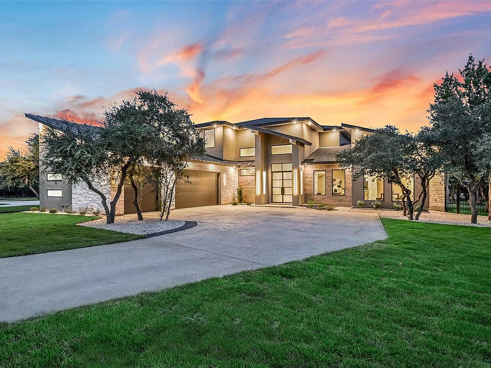 A showstopper in every sense, this CCR Custom Home offers the pinnacle of modern luxury and intelligent design within the exclusive community of Shady Tree Estates. Set upon a private, one-acre lot, this new construction masterpiece seamlessly blends elegant aesthetics with unparalleled functionality, all thoughtfully integrated through programmable smart features that control everything from lighting and security to the Sonos sound system, sprinkler system, and garage doors. Step inside to be greeted by beautiful LED accent lighting that highlights the home's sophisticated details and craftsmanship at every turn. The gourmet kitchen is a chef's dream, featuring a commercial-grade, built-in KitchenAid refrigerator, a professional double oven, a warming drawer, and a wine cooler, making it fully equipped for any culinary adventure or large-scale entertaining. Retreat to the serene primary suite, a sanctuary designed for ultimate relaxation. From the bedroom, a private sliding door opens directly to the back patio, offering a seamless transition to the outdoors. The spa-like bath provides an even deeper sense of calm, overlooking a tranquil courtyard complete with a soothing water feature. Organization is elevated to an art form in the spacious master closet, which is full of custom-built shelving and double dressers. The perfect marriage of indoor and outdoor living is realized in the private, landscaped backyard. The covered patio features a built-in outdoor kitchen, including a gas grill, sink, and mini-refrigerator, creating an ideal setting for entertaining guests or enjoying a peaceful evening. Every detail, from the carefully considered layout to the high-end finishes, demonstrates CCR Custom Homes' commitment to quality and luxury living. Shady Tree Estates is conveniently located to premier shopping, fine dining, and local parks, while also being just a short drive from the natural beauty and recreation of Lake Georgetown.