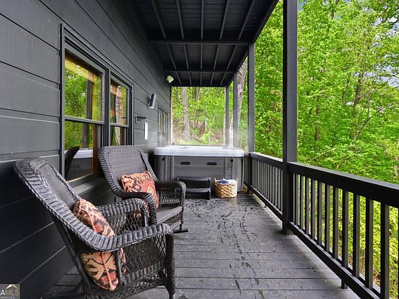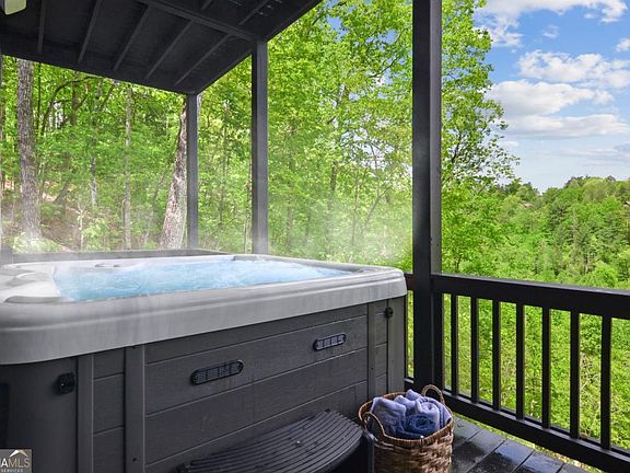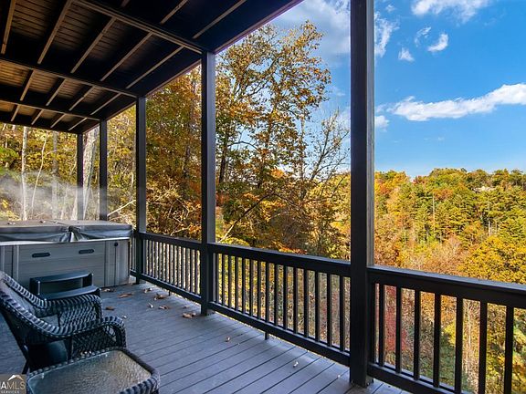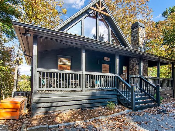 Welcome to The Grin Inn Bear It Lodge in the sought-after Mountain Tops of Blue Ridge! This stunning prow-front cabin checks every box-paved community roads, high-speed internet, and just five minutes from the boutiques and dining of downtown Blue Ridge. NEW ROOF + BRAND NEW HOT TUB! Currently an active short-term rental with excellent annual income, this lodge is being sold fully furnished and turn-key-ready for both investors and families looking for a mountain retreat. Inside, the open concept great room, gourmet kitchen, and dining area flow seamlessly together, creating a warm and inviting gathering space. The chef's kitchen boasts stainless steel Jenn-Air appliances, a large center island, and custom cabinetry. With four spacious bedrooms-including two master suites-three full baths, and a convenient half bath on the main level, there's room for everyone. Downstairs is an entertainer's dream: a private home theater with 80" flat screen, surround sound, reclining seating, and a professional pool table, plus a wet bar and wine cooler. After a day of mountain adventures, unwind in the Swedish-style sauna or soak in the brand-new hot tub under the stars. Whether you're seeking a proven income-producing investment or a luxurious personal getaway, this lodge is mountain living at its finest!