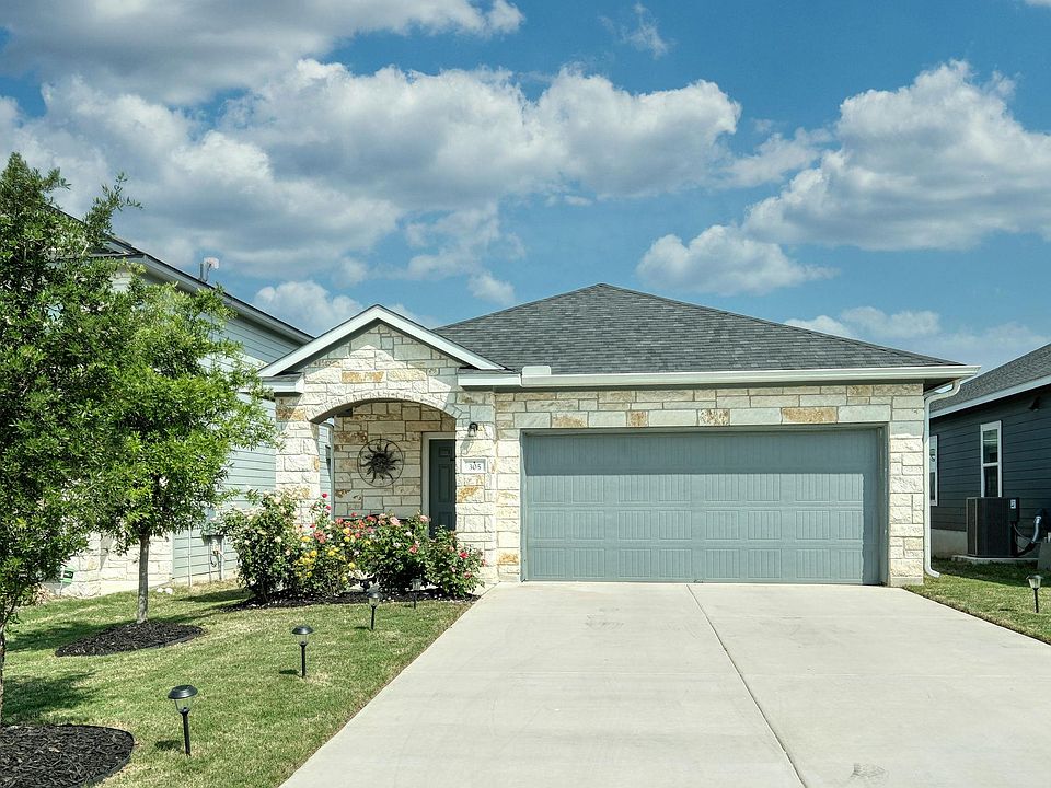 Stunning 3-Bedroom Home in Highly Sought after Sonterra Community! Welcome to this beautifully maintained & thoughtfully designed single-story home, built in 2023 . As you arrive, you're greeted by a charming front porch framed by blooming rose bushes—just the beginning of this home's inviting curb appeal. Inside, you'll find an open-concept floor plan filled with natural light, soaring ceilings, and stylish modern finishes. The spacious living & dining areas flow seamlessly together, featuring durable & elegant luxury vinyl plank flooring throughout the main living & wet areas. The gourmet kitchen is a standout, showcasing crisp white cabinetry, granite countertops, subway tile backsplash, stainless steel appliances & recessed lighting—perfect for entertaining or quiet evenings at home. The serene primary suite offers a relaxing retreat, while the two additional bedrooms provide flexibility for guests, family, or a home office. A recently added paver stone patio extends your living space outdoors—ideal for alfresco dining or enjoying peaceful Texas evenings. This home is truly better than new, featuring thoughtful upgrades, full gutters, inground sprinklers, garage door opener & paid-off solar panels at closing—offering long-term energy efficiency & monthly savings. Set in a vibrant, amenity-rich community with a swimming pool, park, basketball court, and scenic walking paths, this home combines comfort with convenience. Enjoy quick access to I-35 for easy commutes to Georgetown, Austin, & Temple. Close to local dining, shopping at Wolf Ranch Town Center, Round Rock Premium Outlets, outdoor recreation at Lake Georgetown & Blue Hole Park. For added convenience ~Coming soon to Jarrell is a Walmart Supercenter! Convenient to Igo Elementary. This move-in ready gem is nestled in a growing, commuter-friendly neighborhood—don't miss your chance to make it yours!