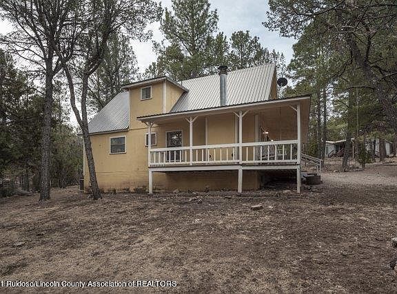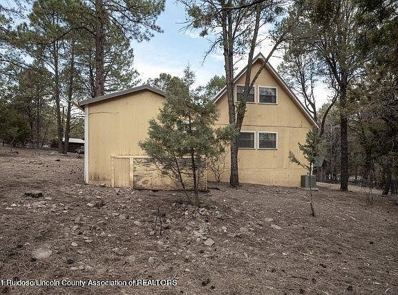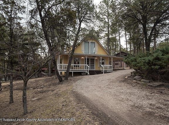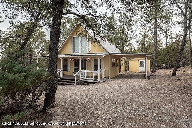 This darling cabin has been owned for 40+ yrs by a group of Palomino horse owners that toured the country doing Palomino horse parades. They named their cabin The Yellow Horse Inn & have enjoyed it for many years! Nice, comfortable covered front wrap around porch, living room has built in FP w/pitched ceilings & lots of windows, dining area, kitchen, laundry & back door to the carport. 2 bedrooms & bath on main level & master bedroom & bath upstairs. Quite cozy but the families have enjoyed it for years. Outside in back is workshop/storage rm that is plumbed for shower, potty & sink, could be made into an effeciency for extra guests/kiddos. Lovely lot w/pretty trees & circular driveway to park quite a few cars. Metal roof & mostly furnished. Quite unique & fun getaway.