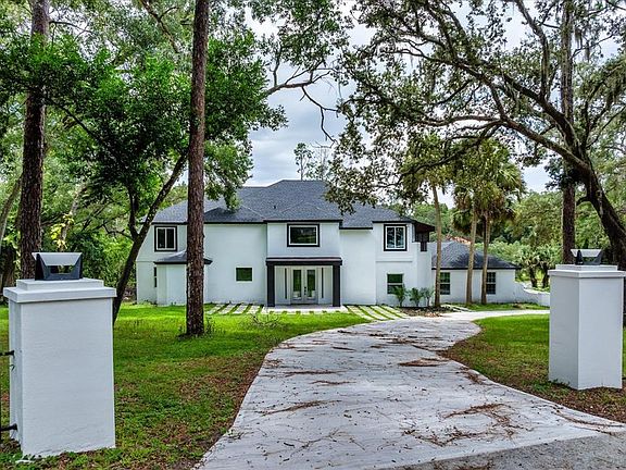 Your private resort awaits in the heart of Sweetwater Club! Tucked behind the gates of the prestigious Sweetwater Club in Longwood, discover this secluded and luxurious pool estate on 1.5 acres of pristine, tree-lined land. A sanctuary of space, sophistication and style, this residence delivers the best of Florida living—indoors and out—with an array of modern upgrades and timeless design elements throughout. As you arrive, you're welcomed by a winding circular driveway framed by towering trees, professionally designed landscaping and elegant stone steps leading to the grand double glass entry doors. The home's curb appeal is a blend of understated luxury and contemporary charm, complete with accented columns, a spacious three-car garage and thoughtfully manicured grounds offering privacy and presence. Enter to an impressive foyer with gleaming marble flooring, upgraded lighting and ambient recessed lighting that extends seamlessly throughout the nearly 5,000 square feet of refined living space. The layout is airy and expansive, anchored by four generously sized bedrooms, 3.5 beautifully updated baths and multiple living spaces ideal for everyday comfort or grand-scale entertaining. The sunken living room exudes elegance, featuring a striking electric fireplace with stone surround and triple sliding glass doors that invite the outdoors in, opening up to your private lanai and pool retreat. At the heart of the home is the gourmet chef’s kitchen, a showstopper complete with a massive waterfall-edge island, pendant lighting, custom cabinetry with showcase-style glass doors, stone countertops and high-end appliances, including a built-in stovetop and ovens. This kitchen is as functional as it is beautiful, designed for entertaining and everyday ease. Adjacent to the kitchen, the elevated dining room boasts a dramatic three-panel picture window, creating a light-filled backdrop for intimate dinners or formal gatherings. The sprawling primary suite offers a private haven, complete with a separate sitting area, luxury vinyl wood flooring and private access to the outdoors. The spa-inspired en-suite bath is a work of art, featuring floor-to-ceiling marble tile, an oversized seamless glass shower with a rainfall showerhead, floating dual vanities, a sleek LED mirror and custom walk-in closet with built-ins plus room to expand. Three additional guest bedrooms are thoughtfully positioned, each with access to stylishly renovated baths adorned with designer fixtures and marble wall tile. A dedicated laundry room and bonus room—perfect for a home office, gym or playroom—complete the interior. Go outside to your resort-style backyard oasis, where relaxation and entertaining converge. Enjoy the screen-enclosed, modern pool featuring a built-in waterfall, a separate bubbling spa and covered outdoor kitchen—ideal for alfresco dining or weekend gatherings. Upstairs, a private balcony overlooks the lanai, offering a peaceful perch to enjoy golden sunsets or quiet morning coffee. Sweetwater Club is one of Central Florida's desired communities, offering tranquility, exclusivity and proximity to everything—country clubs, Wekiwa Springs State Park & Wekiva Island, as well as top-rated schools, premier shopping and dining. With its rare lot size, impeccable updates and unmatched indoor-outdoor lifestyle, this home is a one-of-a-kind opportunity to own a slice of luxury in an unbeatable location. Don’t miss your chance to call this private paradise your own.