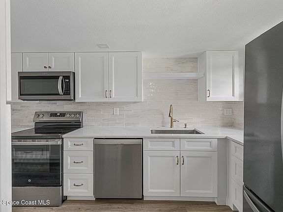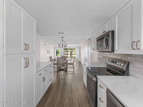 Location, location, location Suntree Tanglewood Community. Fabulous move in ready open floor plan first floor end unit. Located within walking distance to Suntree Country Club. Close to Avenue shopping, multiple restaurants, Viera, golf courses, many medical facilities, Viera Hospital, library, King Center for culture and only minutes to interstate 95 and the ocean. 1 hour to Disney and Orlando attractions, minutes to Cocoa Beach, Cape Canaveral Kennedy Space Center, Port Canaveral hosting major cruise ships. Peacefully walk throughout the beautiful Suntree Master Community while enjoying nature, trees, lakes and birds. This condo boasts of professional designed kitchen. Cabinets have pull-outs, quartz counter tops and gorgeous back splash. All NEW appliances, NEW luxury vinyl flooring from entrance, kitchen, dining and living room to rear patio, updated lighting, newly updated master bath vanity. Windows are covered with custom blinds in dining room and living room. 1476 sf 2 bedroom 2 bath, 2 closets in each bedroom. Don't miss out on this one.