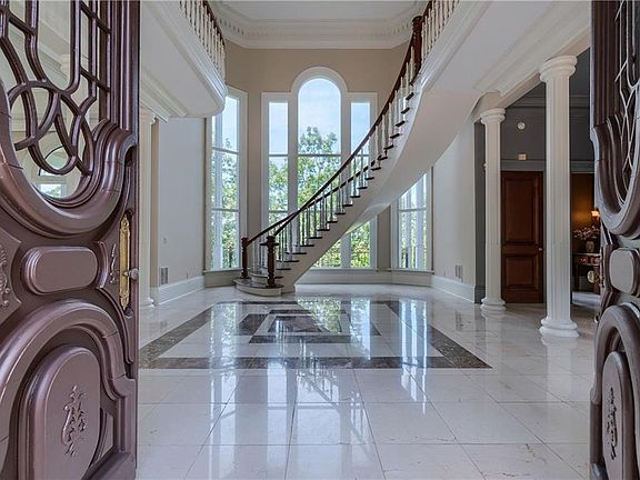 Chattahooche River view from 4 Floors!Grand Entrance with Towering Windows & Circular Staircase. Vibrant Living w/ Marble Floor, Sleek Fireplace, Architectural Molding, Cathedral Doors Throughout the home. Chefs Kitchen, 4Floor Dedicated To Master Suite offers Grand View of River, Movie Theater, His s & Hers Bath & Private Balcony Overlooking the River.Terrace Level offers:Sauna, Gym,Covered heated Pool w/Spa,Wine Cellar, Kitchen. Below Appraisal! New Roof 2019! New Appliances!10-11Ft Plus Ceiling! Listing is Withdrawn to Add New Roof Call the Agent for Serious Buyers!