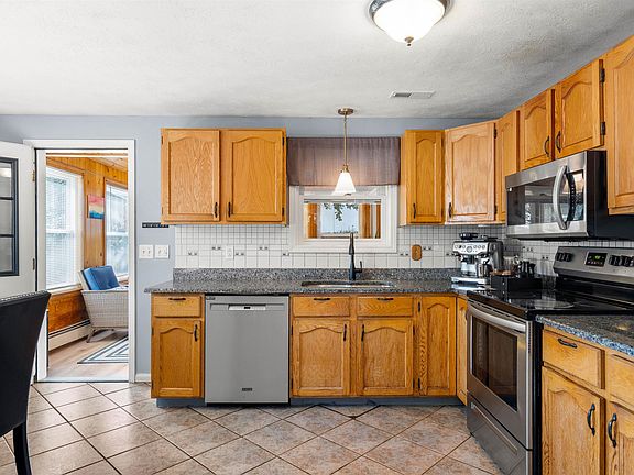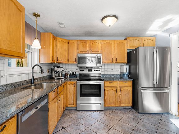 Welcome Home to Trolley Crossing! This beautifully maintained 3 plus bedroom, 2-bath split-level home is nestled in the highly sought-after Trolley Crossing neighborhood of Manchester. Lovingly cared for, this home boasts numerous updates including a new roof, central A/C, high-efficiency natural gas heating system, new windows, a new shed to list just a few —all adding to its move-in-ready appeal. Step inside and be greeted by beautiful hardwood floors throughout the main level. The cozy family room features a wood-burning fireplace, perfect for chilly evenings. Just off the family room is a spacious eat-in kitchen, ideal for everyday meals and entertaining. Down the hall, you'll find two generous bedrooms with ample closet space and a fully updated bathroom. The lower level offers 1 additional bedroom and a potential 2nd bedroom, a ¾ bath, and a laundry area tucked neatly into a closet. You'll also enjoy direct access to the garage for added convenience. One of the standout features of this home is the bonus sunroom located just off the kitchen. This beautifully finished space opens to a walkout patio and a fully fenced backyard, offering privacy and the perfect setting for gatherings and outdoor fun. Located just minutes from major highways, Manchester-Boston Regional Airport, shopping, and dining—this home offers the perfect blend of comfort, convenience, and charm. Delayed showings to begin at open house 10/17 10am-12 Room measurements are approximate.