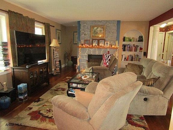 Constructed in 2005, this country cape cod home offers gorgeous mountain views while resting on 4.43 acres. The home has a LR with fireplace and hardwood floors, kitchen with granite counters and new stainless steel appliances, dining area with french doors to the rear deck, family room with hardwood floors, first level master suite with master bath, additional first floor bath and bedroom and first floor laundry. Second level has two bedrooms and a full jack & jill bath. Full finished basement with a huge rec. room, two half baths and another bedroom. 2-car attached garage, enclosed breezeway, front covered porch, rear deck and outbuildings. Professional landscaping, Koi pond, in-ground fire pit, fully fenced lot and pergola.