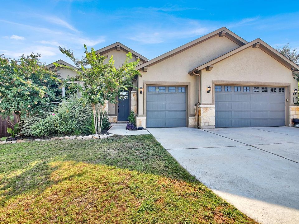 Exceptional one story on a cul-de-sac lot! 3 car garage with openers & full house water filtration system*Gourmet Kitchen with huge island & under mount sink & breakfast bar, abundant cabinets and granite counters, stainless steel appliances including double door refrigerator, stove stack vent hood, butlers pantry, pendant & recessed lighting opening to massive family room with boxed ceiling and more recessed lighting*Home also features 7 ceiling fans, mudroom and oversized utility room, study off entrance and coffee/breakfast bar & wine frig*Large covered patio with stone flooring plus an additional stone patio*Home has all wood floors and tile floors in baths & utility room*Elegant master suite with double vanity, walk-in shower & closet* 8ft raised panel doors & doggy door*Stone & stucco exterior*Great community amenities...pool, tennis court, playscape, volleyball court & picnic area*Located just minutes from Marble Falls!