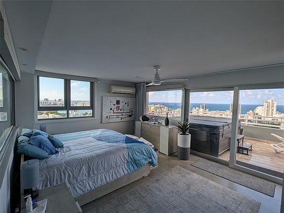 Discover the epitome high rise living in this breathtaking 2-level penthouse, located in the heart of Santurce's vibrant arts district. With approximately 2,400 sq. ft. of updated interiors, this fully furnished home features 3 spacious bedrooms and 3 full baths, including 2 rooms with ensuite bathrooms and walk in closets. Recently updated with high-end appliances and elegant finishes. The 1,100 sq. ft. private terrace is an entertainer's paradise, featuring a full outdoor kitchen with stainless steel appliances, an ice maker, and a wrap around bar/dining area. Unwind in the private Jacuzzi or relax in the covered TV and entertainment area, all while enjoying panoramic ocean and city views. The open 2-story loft-style interior is flooded with natural light, creating a warm and inviting atmosphere. This unit comes with a designated EV charger installed in the two designated private, covered, parking spaces, making it ideal for electric vehicle owners. Located in the Metro Plaza building, residents benefit from 24/7 security, concierge services, a full backup generator, 2 gyms, residents only garage, a guest parking garage and a dog park. 2 Restaurants in building. The location is exceptionally walkable, nestled in the desirable Santurce arts district and just steps away from the beautiful Condado Beach. Live in one of San Juan's most sought-after neighborhoods and enjoy the perfect blend of indoor and outdoor luxury. Don't miss this rare opportunity!