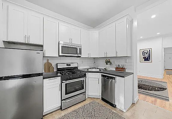 The separate kitchen area features modern appliances, stylish countertops, and plenty of storage, perfect for creating your favorite dishes.