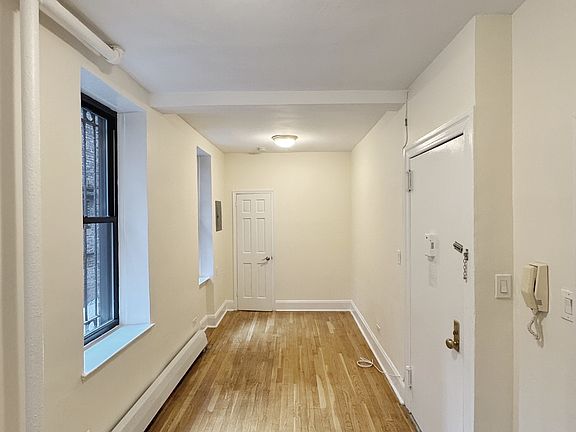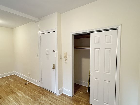 Quiet tree-lined blockOversized studio apartmentExcellent closet spaceSubway-tiled bathroomCompact kitchen