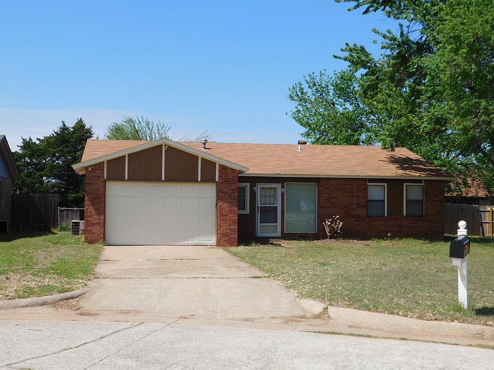 Larger 2 bed and 2 bath 1 car home. Comes with range and dishwasher. Fenced yard with a fireplace. Pets are accepted with a 1x non refundable fee. Dead end road and nice area, Mustangs Schools! It's a must see. IF are interested please call our office number to schedule a time to view. Min 1 year lease, tenant is resposible for all utilities and lawn.
