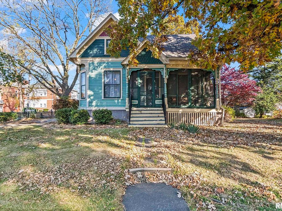 Don't miss the charm of this lovely 3 bedroom home with an inviting screened in front porch. This home features original woodwork and hardwood floors. Main floor offers large living room with fireplace, formal dining room with built in buffet cabinet opening into the kitchen. Primary bedroom, and separate family room/den. Upper level you will find 2 bedrooms and a full bath with stand up shower. Large bonus closet in the bathroom. Unfinished basement. 1c detached garage and a separate 2c detached garage with a large loft that is heated and cooled. Come add your own touches to this lovely home.
