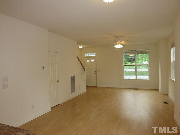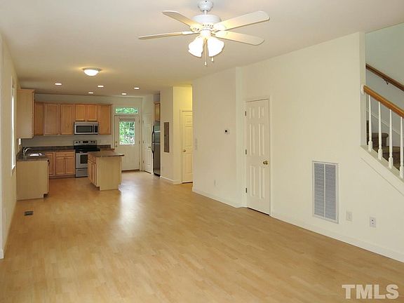 Detached home in Carrboro. Open living room and dining area, with hardwood style laminate. Kitchen has breakfast bar, pantry, recessed lighting & stainless appliances. 1 bedroom on main, with carpet, ceiling fan, walk in closet. Shared full bath in main. 3 bedrooms up each with private bathroom, ceiling fan, carpet. Laundry closet with washer and dryer on 2nd. Fenced backyard with patio. One indoor pet may be permitted, w/fee, prior approval. $15/mo filter fee.