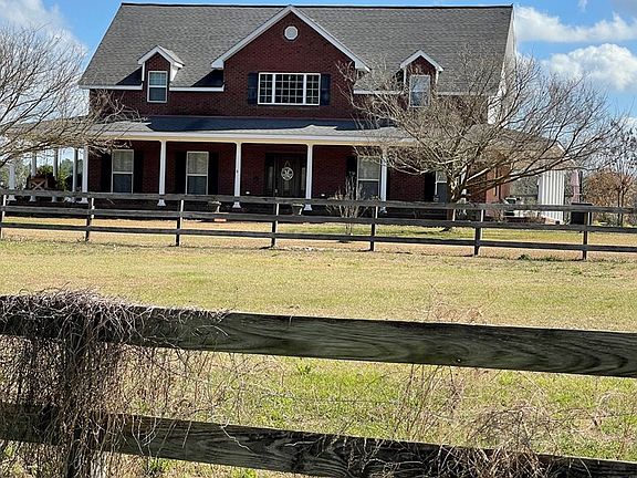 Don't miss out on this Eye catching 2 story rich, red brick home with a wrap around porch to rock & relax while watching the Sunset. Screened Back porch to relax while enjoying watching kids play in the pool. Spacious yard with 3.62 acres with plenty of room for kids to enjoy the outdoor life & enjoy nature! Inside home features a spacious kitchen with island that has seating for 3-4 & tons of storage space along with room for breakfast table. Formal dining room for family gatherings & entertaining! Spacious Master bedroom with large master bath & walk-in closet. Beautiful entry to the Foyer & staircase that leads to 4 spacious bedrooms that also has an additional room that could be used as 5th bedroom/playroom. The detached garage has an 900sq ft apartment/quest home fully equipped with bath and kitchen area with separate entrance. Kids will love summers splashing in the 18 x 36 Salt water pool with a sunning deck. Horse barn/stables with fenced in area. Call today to set up showing