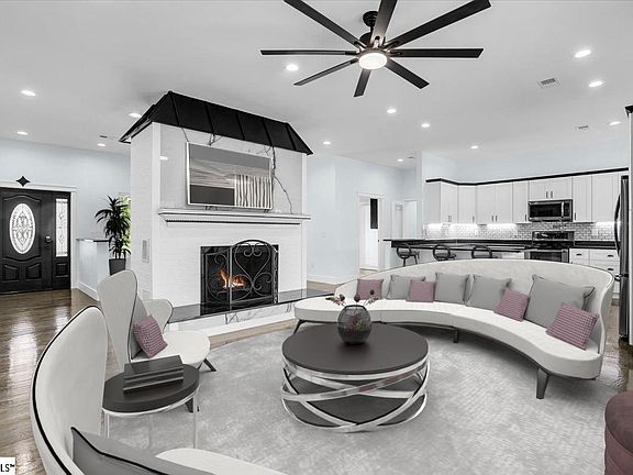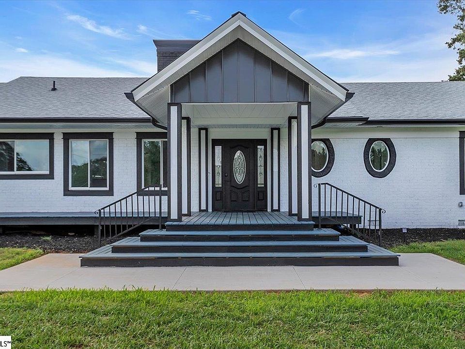 Don’t miss your chance to make this your dream home. Completely Renovated Move-In Ready Single-Story Modern Retreat on 2.61 Level Acres in Highly Sought-After Taylors! This stunning 1968 home has been fully transformed with around 2,750 sq. ft. of modern living space. A grand driveway welcomes you to the majestic covered porch and oversized 4-car garage. Step inside to find 3/4" red oak hardwoods throughout (porcelain tile in baths, mudroom & sunroom), soaring 10 ft ceilings, and abundant natural light from oversized windows. The chef’s kitchen features extensive cabinetry, granite countertops, and a large bar perfect for entertaining, flowing seamlessly into the open living room with a brick wood-burning fireplace and granite hearth. The bright sunroom overlooks a level 1+ acre backyard—ideal for a future pool—with access to a wraparound porch that connects to the luxurious primary suite. This spa-like retreat includes a glass double door entry, dual vanities, tray ceiling with accent lights, and a zero-threshold shower with floor-to-ceiling tile. At the other end of the home lies a second primary with ensuite giving you flexibility for guests. 3 bedrooms feature walk-in closets with custom built-ins (4th has built-ins designed for use as a bedroom or office). Designed with accessibility in mind, this single-story home offers ADA-friendly features including a no-threshold entry from the garage, a porcelain-tiled ramp leading to the laundry/mudroom, and wide doorways throughout. Additional upgrades include LED color-adjusting accent lights throughout the home, inside and out, creating both ambiance and style. Every detail has been updated: new roof, 2 HVAC units, tankless water heater, encapsulated crawlspace, foam insulation, new electrical, plumbing, and windows for maximum efficiency. Set on a level 2.61-acre lot suitable for a horse farm in the desirable Taylors area, this property offers space and privacy while being conveniently located to Downtown Greenville, Greer, and the charming town of Travelers Rest. With so many upgrades, this is truly a must-see property! Call today and schedule your own private tour.
