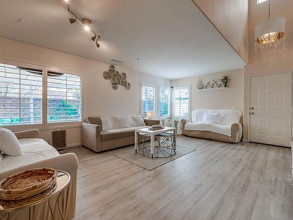 Upgraded Corner Unit, with Westerly Mountain Views and Large Private Patio & Yard. Customized with new light fixtures & chandelier, luxury vinyl flooring, carpet & pad, appliances, Nest thermostat, AC system, wood plank accent walls, decorative bathroom tiles, and barn door to walk-in closet to name a few. Ideally located just steps from the community pool; and a 5-10 minute walk to Mast Park, San Diego River trails, Santee Town Center shopping, restaurants and San Diego Green Line Trolley. Don't miss out on this stunning, spacious town home. See Supplement for more details.