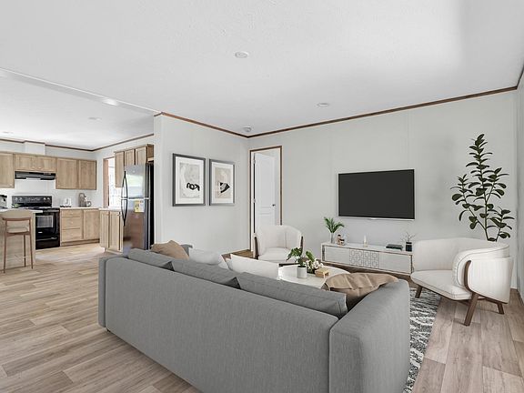 This new, never-lived-in home sits on a flat three-quarter acre lot, giving you both space and peace of mind. FHA-certified and de-titled, it’s move-in ready with everything fresh from day one. Inside, the layout is simple and practical. Four bedrooms and two full baths surround an open livingarea designed for easy everyday living. The kitchen has plenty of storage and counter space, ample windows keep the rooms bright andwelcoming. The primary suite is set apart for privacy, with its own walk-in closet and full bath. Three additional bedrooms provide flexibility forfamily, guests, or a home office. Outside, the lot gives you room to spread out, whether that means a garden, a fire pit, or space to simply enjoythe outdoors.