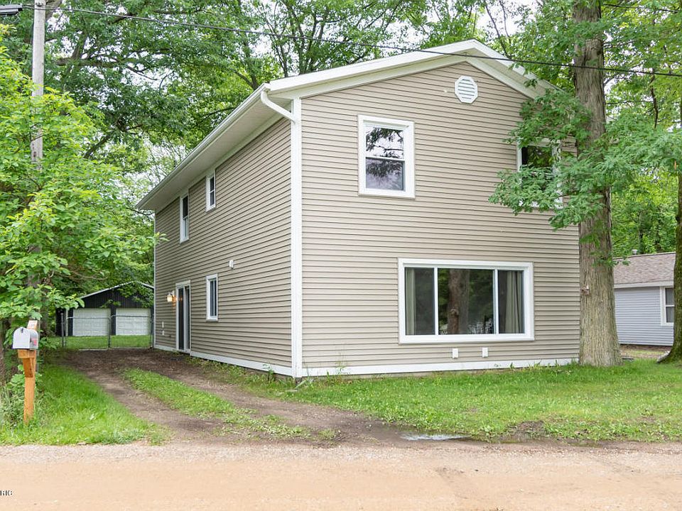 Welcome home to beautiful Baseline Lake. Baseline is an all sports 187 acre lake with depths up to 45 feet. This 5 bedroom 2 bathroom home will be sure to accommodate everyone for all the lake fun to be had. Updates include, brand new carpet on the upper level. Fresh paint, completely remodeled main bath with heated tile floor. Solid oak doors throughout the entire home. New well pump 2014. 2011 new furnace with humidifier, central air, new septic, roof, windows, siding, gutters and watersoftener. The kitchen has updated oak cabinetry with Corian countertops a large pantry and dining area. All of this plus a 30x40 pole barn for all of your lake toys! Enjoy the sunset views from your living room or from the bonfire on your 50x125 lake lot across the street.