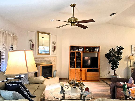 Active Under Contract - Discover this charming three-bedroom, two-bathroom pool home situated in a serene and picturesque neighborhood at the end of a cul-de-sac. Set on a secluded lot with no rear neighbors, this residence provides a tranquil atmosphere, enhanced by views of the beautifully landscaped private yard. Upon entering, you are greeted by a spacious foyer and living room, characterized by high ceilings, abundant natural light, and an elegant marble wood fireplace. The expansive eat-in kitchen impresses with its generous cabinetry, ample counter space, pantry, and sliding doors leading to the screened-in lanai. Additional features include sizable bedrooms, a walk-in closet, numerous storage options, an indoor laundry room, a dedicated dining area, and an 8 x 17 workshop or man cave. The outdoor space boasts a screened-in lanai and an in-ground pool, perfect for relaxation and entertaining, while the private backyard invites you to enjoy the sights of turkeys and squirrels. Recent upgrades include a new pool cleaner, pool pump, garage door and opener, backsplash, with the roof replaced in 2013 and the AC in 2018. Seize the chance to own this private pool home in a sought-after Spring Hill location—schedule your showing today.