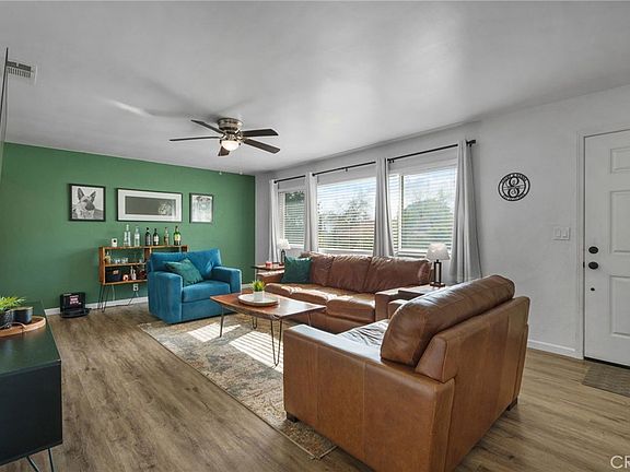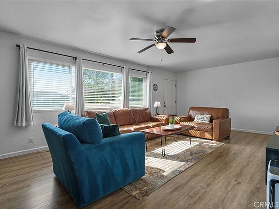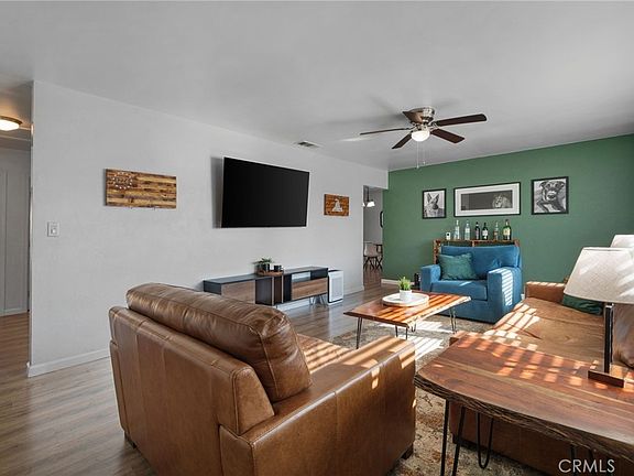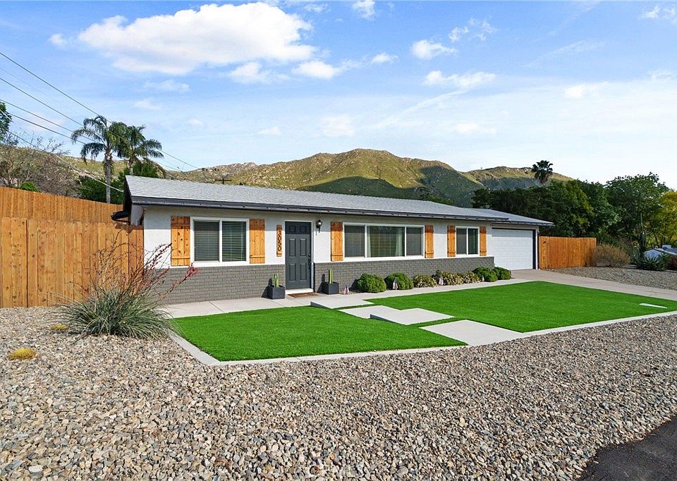has a window looking into the back yard and the bathrooms both have stylish tile work. The two guest bedrooms are generously sized. The primary bedroom has an en-suite bath, walk-in closet and sliding door out to the incredible back yard. Imagine relaxing on your back patio enjoying gorgeous sunsets and mountain views with plenty of space to entertain and play. The landscaping has been professionally designed with drought tolerant plants, drip system & turf to keep maintenance to a minimum. Amenities include: New windows & sliders, interior doors, laminate flooring, fully remodeled kitchen & baths, blinds in windows & ceiling fans. The storage on this property is a dream! Store your RV behind the 14.5' gate on a 30x23 concrete slab - did I mention the gate opens out for lots of clearance? There is also storage for a boat or truck on the north side with an 8ft gate. Both the interior and exterior of this home have been lovingly modernized so all you need to do is unpack your belongings. ** This property potentially has an assumable VA loan at 2.75% if your Buyer has a VA entitlment to substitute over.