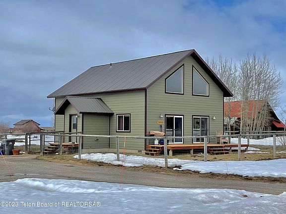 It's all about the view sand this lovely home has just that! Looking right down the Teton Canyon to the majestic Teton Range. Located 2.5 miles North of Driggs, Teewinot subdivision is in the prime view corridor and has quick access to Ski Hill Road to Grand Targhee Mountain Resort. This great home has plenty of natural light and a wonderful eastern view deck facing the mountains. The perfect chalet style home on 1 acre, built in 2005, 1716 square feet, 2 bath, 3 bedrooms, a second level open loft area for the primary bedroom or there is a main floor primary bedroom, your choice. This custom-built home has wood accents throughout, log railings, knotty pine trim, rough sawn wood flooring and knotty alder cabinets. The massive cathedral ceiling and open floor plan in the main area offers plenty of room to entertain family and guests. There are Irrigation water rights accessible to lot owners. A bonus storage shed to keep your outdoor gear, or it would make for a great garden shed for the gardener!