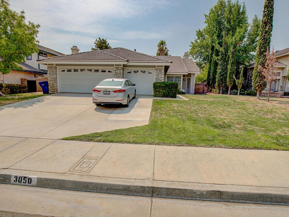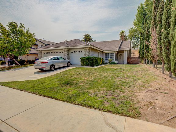 Beautiful single story home with a 3 car garage located in East Palmdale. This property has laminate wood flooring throughout. The kitchen is open to the family room and dining room, perfect for entertaining. The kitchen features granite counter tops, pantry cabinets, double oven and a stainless steel sink. The family room has a fireplace perfect for winter. There is a half bathroom near the front of the house perfect for guests. This home features 2 additional full bathrooms with dual sink vanities & a tub/shower combo. The master bedroom is spacious with access to the rear yard, a spacious walk in closet and an attached master bathroom. The front yard is landscaped with a front lawn and planters.
