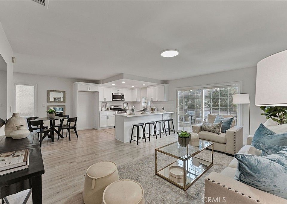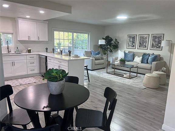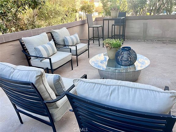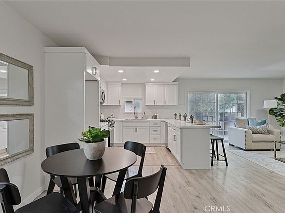 "WOW! Opportunity Knocks." This beautiful turn key home in a gated community is an upper end unit with tree view, also is one of the few units that has very large balcony. The home has open floor plan, as well as, newly remodeled kitchen with new cabinets and quartz counter, a new microwave oven, a newer 5 burner LG Stove and a newer Bosch dish washer. Newly installed ceiling can lights through out kitchen, living, dining and bedrooms. Upgraded Luxurious vinyl plank flooring throughout the home and upgraded double pane windows for the bedrooms. Spacious living room with double pane sliding door to the large balcony that is great for the outdoor entertaining and a nice place to enjoy the morning coffee. The master bedroom has walk-in closet with closet organizer and an upgraded sink. The hallway bath with tub & shower as well as the upgraded sink. The secondary bedroom with closet and large window that provides natural lights. The laundry area is conveniently located under the unit. The association offers trash, water, gas, pool, Spa, clubhouse, BBQ area and Gym. The property has an assigned covered carport with storage space plus the availability to acquire one additional permitted parking space. The community is conveniently located near shopping, South Cost Plaza and easy access to freeways. Its a nice place to call home.
