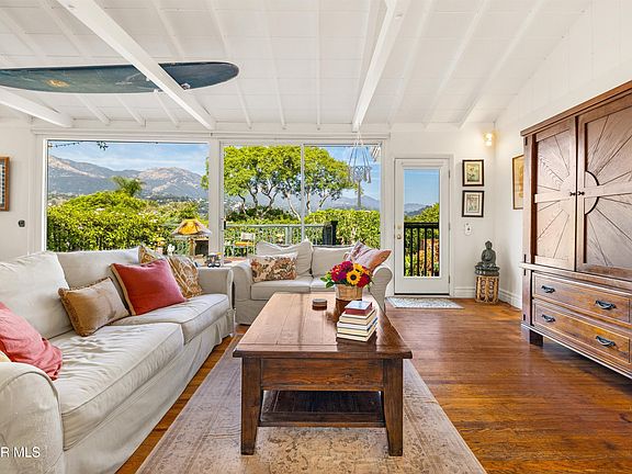 Located one block off State St. This SINGLE story 2 bedroom, 2 bath charming gem sits in the heart of Santa Barbara. As you enter this home you are greeted with the most spectacular, breathtaking VIEWS of the Santa Ynez Mountains. Offering floor to ceiling windows and cozy fireplace in the living room, you will be in awe of views that last forever. Enjoy barbecuing and entertaining on the back patio areas that overlook the luscious large backyard and all while reaping the benefits of downtown Santa Barbara's living style at its best! You will have many peaceful Zen moments here and be in awe of extraordinary mountain views from the living room, dining room, kitchen, den area, primary suite and outdoor patios. This dream property is so close to a beautiful park, dog walking beach, great golf course, up & coming groovy shopping and eating areas on De La Vina, hospital & so much more! This is a special home.