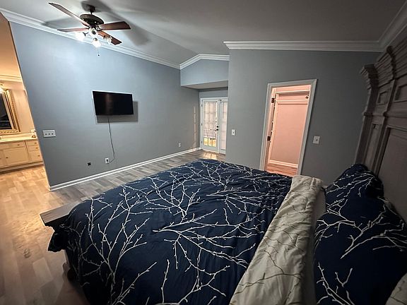 Indulge in the epitome of relaxation within the master bedroom, featuring elegant French doors, a sprawling walk-in closet, and his-and-hers sinks in the spacious bathroom. The house is designed for hosting unforgettable gatherings, with a generously sized living room, a classic dining area, and a grand ballroom on the lower level.
