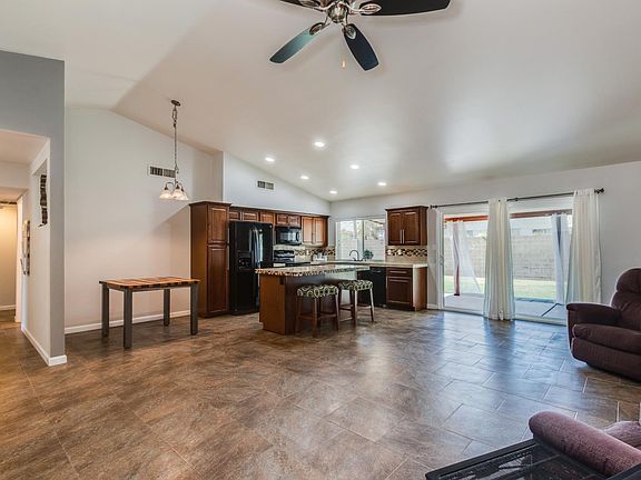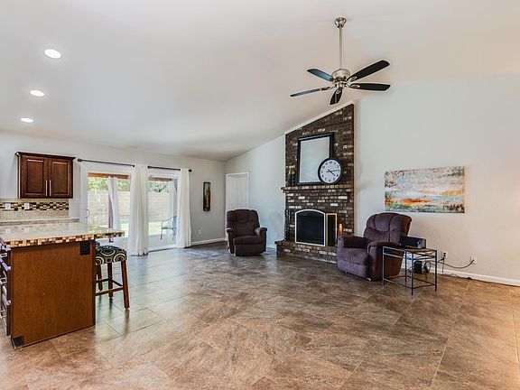 Charming IMMACULATE corner lot with RV gate and NO HOA. 2018 Dual Pane Energy Efficient windows throughout and extra insulation added in the attic in 2014! So crank down the 2016 AC Unit and stay cool in your new home! Highly desired spacious OPEN floor plan with VAULTED ceilings and tiled floors. Kitchen has granite counters, island with breakfast bar, and maple custom cabinets. Family room has attractive brick fireplace. BRAND NEW carpet in the 3 large bedrooms! Hallway bath features custom tile and circular vessel sink. Master Suite features a walk-in closet, bath has large vanity, and beautifully tiled step in shower. Very large backyard has RV parking, storage shed, sprawling covered patio, & spacious grass area. Inside Laundry Room w/lots of shelving/storage. Close to I-17 & 101