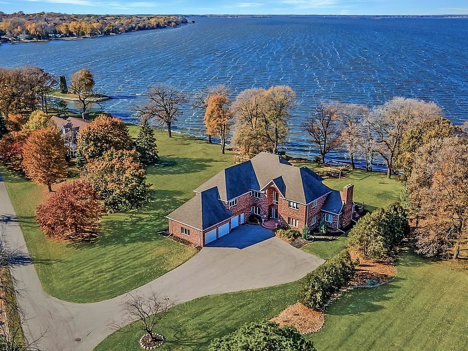 Showings begin Oct. 20th. Gorgeous waterfront setting with all of the fun activity's lake living offers. Access multiple lakes and rivers by water including restaurants, beaches and music venues too. This expansive home features 3 floors of living spaces with great views of the water. Enter to the impressive, curved staircase opening to the great room and dining room all with an abundance of windows. A large patio is easily accessible to enjoy outdoor living. The main floor includes a den/study with fireplace. Lower level adds incredible entertaining options with a kitchen and separate bar. Other room in lower level is a kitchen. What a great opportunity! Ceiling is exposed floor joists in some of the LL rooms. Showings begin Oct. 20th.