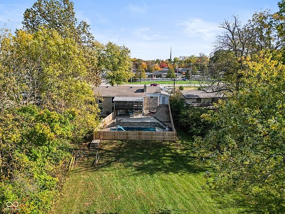 Updated limestone ranch with a full, finished walk-out basement and an inground pool facing a huge yard that backs up to the corn field. 4 bedrooms + 2 full bathrooms. Both bathrooms have been completely updated with beautiful custom tile. The finished basement includes a huge 16x33 carpeted rec room with a gas log fireplace, a small second kitchen, and a bedroom + full bath (watch for the secret door to the basement bedroom). The basement could easily be used as an in-law suite or a private space for guests. Upstairs, the family room has a second gas log fireplace and is open to the home's primary kitchen (granite counters, tile backsplash) and dining area, plus a 24x12 screen porch that overlooks the pool, yard, field, and woods. On the lower level, a covered concrete patio is the perfect place for patio furniture, grilling, and storing pool supplies. The current owner uses it as an outdoor home theater!--the projection screen can remain with the home. Pool liner & pump were replaced in 2019. The large attached garage has 434 sqft. The backyard is private and woodsy with big trees lining the north side of the yard and woods bordering the corn field. Furnace 2015, AC 2016, Water Heater 2015, Roof 2008. This home does not require flood insurance; it did not flood in the flood of 2008, and the basement has never had water intrusion issues. Last but not least, the basement bathroom floor is literally worth $107...in pennies.