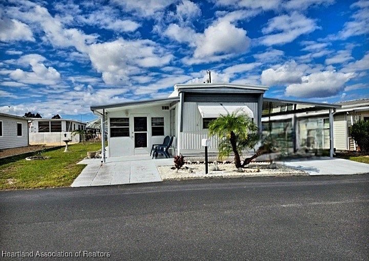 Welcome to this fully furnished, move-in ready mobile home on owned land (no lot rent!) located in the Francis One 55+ Mobile Estates community of Sebring, FL! As soon as you arrive at the driveway, the well-maintained appearance of the home and landscaping will be sure to pleasantly greet you! Impressively spacious inside – 1 bedroom offering generous amounts of closet space, 2 full bathrooms, nicely appointed central kitchen adjacent to the designated dining area, PLUS a wonderful screened-in side porch with the potential to convert into a 2nd bedroom! The main central living areas are bright and open with all present furniture included with the sale of the property. The centrally located kitchen has plenty of cabinets and counter space with all present appliances included. An interior designated laundry area provides for easier laundry days, washer & dryer included. Covered parking for your vehicles to be out of the direct exposure from hot Florida sun is provided by the 12’x38’ aluminum carport. Corded electric lawnmower, 2 bicycles, and tool box also included with the dale of the property! The $77/month HOA Fee charged to the residents of this neighborhood covers and provides access to all of the community's amenities including a large community pool and clubhouse.