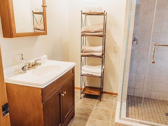 Large showerLinens includedKing bedTwo full bedsTwo level garage apartmentFully equipped kitchen
