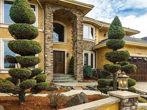 Original owner is Custom Home Builder, built this in 2005 with top rated materials & excellent quality throughout entire home. Master suite features Puget Sound view & gas fireplace. Entertainment-size deck for summer parties or quite evenings enjoy the sunset. All 4 bedrooms are en-suite. Gourmet kitchen w/ top notch appliances & build-in coffee machine, heated floors, home theater, wet bar, built-in vacuum, 3-car garage, outdoor kitchen, too many to list, you must take a look. Owner occupied.
