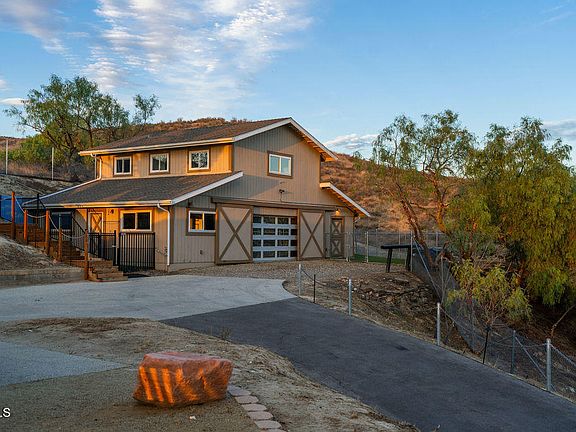 On a clear day you can see forever! Custom One-story home with panoramic city & valley views on almost an acre providing complete privacy from neighbors. One of a Kind Property: stunning views, large lot, seclusion & total privacy. Follow the electronically gated private driveway up to the top of the mountain plateau, where mature, elegant pine trees surround a beautifully updated home. Interior improvements include remodeled kitchen, bathrooms & stainless-steel appliances, custom cabinets and granite counter tops. Enjoy breakfast while taking in views of the entire valley below. Property includes 2000 square foot ''BARN'' & garage area, w/2nd floor loft. The Barn has unlimited potential for hobby enthusiasts, musicians, animal lovers (property and surrounding area is zoned for barnyard animals) and much more. Barn second floor loft has a kitchen, bathroom and large closet, which provide potential for guest quarters or a myriad of uses. Exterior of property includes newer artificial turf surrounding house, newer landscaping and sprinkler system, newer fencing around entire perimeter of property (.92 acre), paved 250 ft driveway. This is an incredibly unique property in Simi Valley that really needs to be seen and toured. Perfect for those seeking their own Simi Private Hideaway less than five minutes from the 118 freeway and commerce,complete with spectacular 360-degree views.