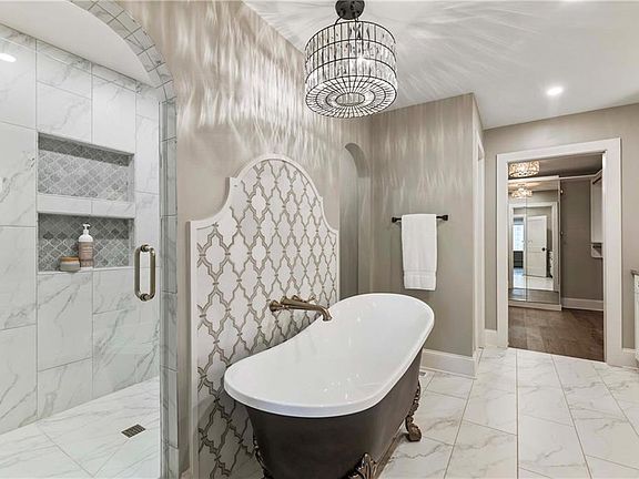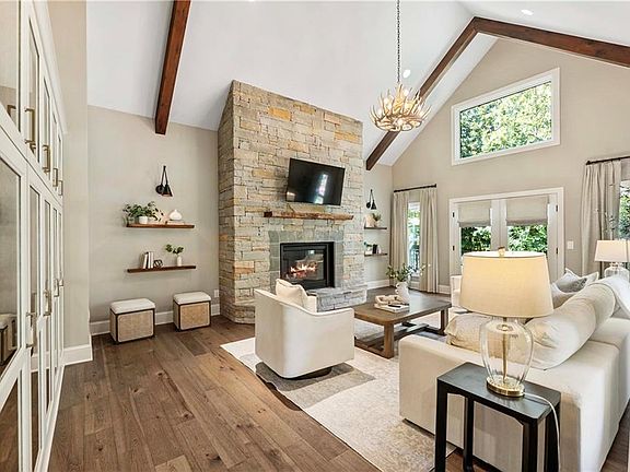 Welcome to Maple Lane, where serenity and sophistication meet the ultimate walkable Downtown Alpharetta lifestyle. Completely transformed in 2022 from a 1,800 sq ft cottage into an over 4,000 sq ft custom-designed showplace, this home blends refined design, functional luxury, and modern comfort, all on a private, level lot with a walkout saltwater pool. From the moment you arrive, the gas lantern–lit front porch invites you in. Inside, the bright foyer is flanked by a charming office with triple bay windows overlooking the manicured front lawn. Across the hall, the home opens to an expansive chef’s kitchen designed for both daily living and elegant entertaining. Kitchen highlights include: JennAir Professional appliances, including a 42” built-in French door fridge/freezer, 48” 6-burner gas cooktop w/griddle and custom designer vent hood, Double wall ovens, and double porcelain sink. Custom cabinetry offering detailed drawer inserts, a hidden walk-in pantry, a butler’s pantry w/beverage cooler, with abundant storage. The vaulted, beamed family room centers around a stone fireplace and custom mirrored built-ins, French doors open directly to the backyard for seamless indoor-outdoor living. The main level delivers ideal everyday functionality with a powder room for guests, a laundry room, and a primary retreat featuring vaulted ceilings, French doors to a covered private deck, a luxury spa bath with a custom clawfoot tub, a walk-in shower, double vanities, and a custom closet with built-ins. A separate sauna room offers the flexibility to serve as a second closet or wellness space. An additional main-level ensuite bedroom includes a custom closet and French doors leading to its own private porch. Upstairs, discover a jr primary suite with a spacious bath and walk-in closet, plus an additional bedroom with a full bath and a versatile loft area perfect for a playroom, office, or lounge. The finished terrace level features its own laundry hookup, kitchenette, full bath, exercise room, additional rooms/sitting area (walls could be opened up) for a future large rec or media space. The oversized 3-car garage provides plenty of space for vehicles, storage, or hobby use. There is a closet that can be retrofitted to accommodate an elevator that would provide easy access to the kitchen hallway. Step outside to your private backyard oasis, complete with: Saltwater pool, Covered and uncovered deck spaces for entertaining, Turf play area, Custom fire pit for evenings under the stars, fully fenced yard perfect for pets and play. Additional features include whole-home water purification, spray foam insulation, and all new systems (2022) for turnkey peace of mind. Located in one of Downtown Alpharetta’s most desirable neighborhoods, this home offers unmatched walkability to restaurants, shops, farmers markets, live music, and festivals, everything that makes Alpharetta one of Georgia’s most vibrant communities. 3051 Maple Lane—where design, comfort, and location come together perfectly.