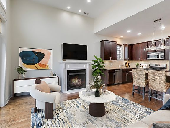 Gas log fireplaceLarge front balconyHigh ceilingsLarge islandSlate accentsMarble finishDream kitchen