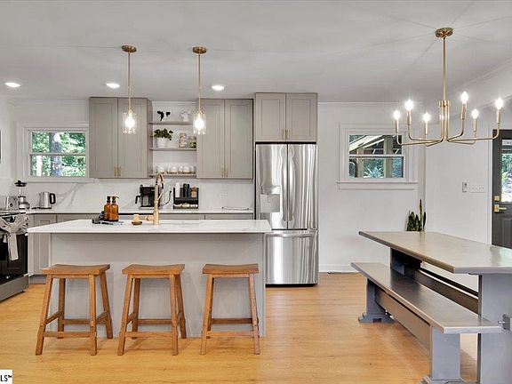 Open House Sunday January 18th from 1PM- 3PM. Welcome to this beautifully reimagined, single-level home, meticulously updated. This 4-bedroom, 2-bath residence sits on a spacious 0.80-acre lot, offering privacy, functionality, and modern comfort in a desirable location. Situated just minutes from Paris Mountain State Park — a beloved local destination with hiking, biking, picnicking, and scenic trails — this home offers both peaceful living and access to outdoor recreation. Inside, the home features a fresh, contemporary feel with new quartz countertops, 42" soft close cabinetry, and fully updated bathrooms showcasing new tile surrounds, vanities, and updated lighting throughout. The layout is both inviting and practical, ideal for everyday living and effortless entertaining. Step outside to enjoy the expansive backyard, complete with a firepit and a covered outdoor living space, perfect for grill-outs, gatherings, or relaxing evenings outdoors. A two-car garage provides added convenience and storage. With its recent renovations, generous lot size, and thoughtfully designed indoor and outdoor living spaces, this move-in-ready home is a standout opportunity. The furniture is negotiable as well. Come see it today!