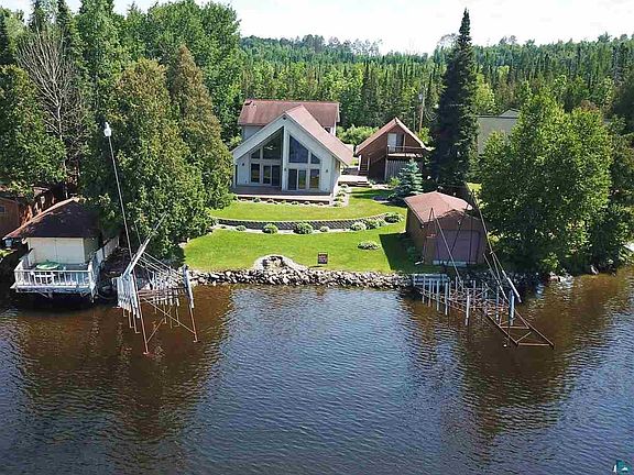This stunning 2004 custom built home sits on the pristine South shores of coveted Lake Vermilion known for it's fishing and lake recreation; with a level approach to the lake this home sits a short walk away from the lake with a sauna and guest cabin right by the shores edge. Your classic get away or year round home features a great room with vaulted ceilings to make the most of the views with rock fireplace for cozy evenings at the lake. This home was built for entertaining with decks and places for company to enjoy all the attributes of the North woods. Garage space for all the toys and close to golfing and Boundary Waters trail system. This is your exclusive low-maintenance getaway or year round home, call for your tour today!