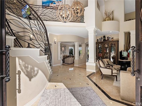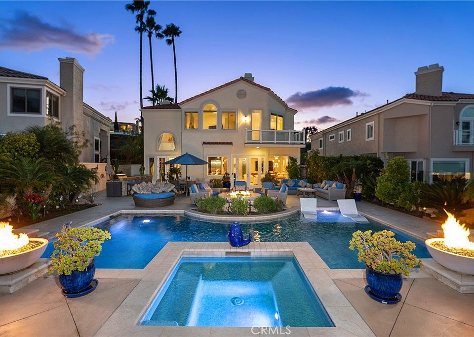 Perched in the hills of Niguel Summit, this exquisite Mediterranean-inspired residence captures panoramic mountain views, sparkling city lights, and endless vistas. Bathed in natural light, the home is exceptionally airy, bright, and spacious, offering an effortless elegance throughout. Thoughtfully upgraded, the residence features four generous bedrooms, three beautifully appointed bathrooms, and a versatile loft, ideal for an office, retreat, or additional living space. A grand sense of arrival begins at the custom-crafted double entry doors, opening to refined interiors accented by artisan wrought-iron stair railings, soaring ceilings, and an inviting open layout. A true entertainer’s delight, the home blends seamless indoor–outdoor living. Step outside to a resort-style sanctuary, complete with cool-spa fire features, a built-in outdoor barbecue pavilion, expansive patios, and multiple lounging areas—all set against breathtaking scenic vistas. Perfectly situated minutes from world-class resorts, pristine beaches, premier shopping, fine dining, and the highly anticipated, newly re-imagined Dana Point Harbor, this home offers a lifestyle of elevated coastal luxury in one of Orange County’s most desirable view communities.