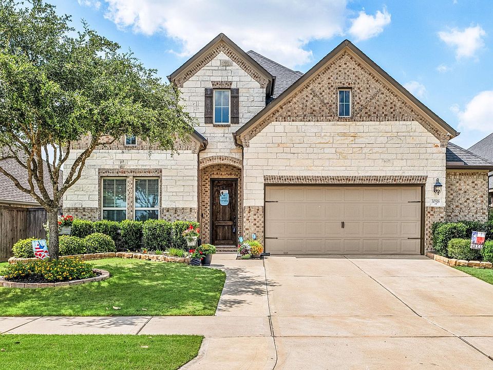 Welcome home to 30518 Morning Dove Dr. in Jordan Ranch, zoned to Lamar Consolidated ISD. This 4-bed, 3-bath layout greets you with a front guest suite and full bath, formal dining, and an open living/breakfast/island kitchen with bright white cabinetry. The living room adds a custom built-in media wall, wood-style floors, and a wall of windows for natural light. The main-floor primary suite boasts an oversized shower, soaking tub, and walk-in closet. Upstairs, two secondary bedrooms flank a roomy game room, while a floored attic supplies bonus storage. Whole-home water-softening keeps everything running smoothly. Outside, enjoy a covered patio and generous backyard. A 3-car tandem garage offers an extra 5 ft. of storage space. Access to resort-style Jordan Ranch amenities, schedule your tour today!