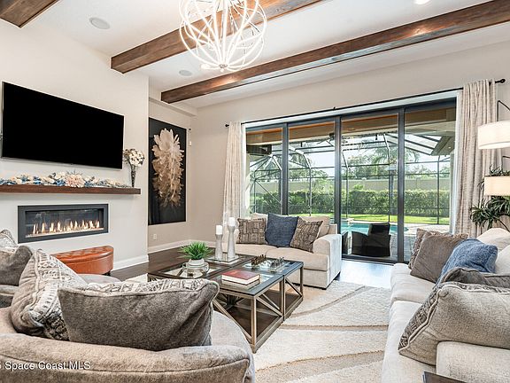 Step through grand double wooden front doors into a home that immediately impresses with soaring ceilings, exposed wood beams, and rich hardwood flooring throughout. The spacious open floor plan includes 4 bedrooms, 3 beautifully appointed bathrooms, and an oversized office — perfect for working remotely, hosting clients, or creating a private retreat.