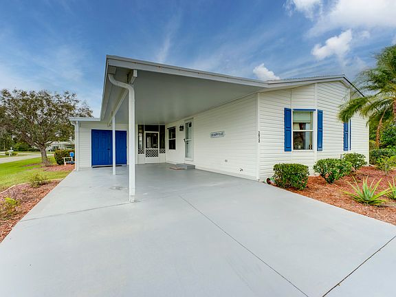 Move in Ready, GORGEOUS 2/2 home on an oversized corner lot!! It's a MUST SEE...NEW roof (2021), NEW A/C (2021), NEW vinyl Plank Flooring throughout living & bedrooms, and freshly painted. Upgraded kitchen and bathrooms with granite countertops and all GE Stainless Steel appliances. Over 1,300 sq feet with vaulted ceilings and wood beams. Spacious bedrooms with walk in closets and extra storage cabinets in the Master bathroom. Sunroom to enjoy your morning coffee. Oversized carport and storage shed that can fit a golf cart. Savannah Club is a highly desired 55+ resort style community with 4 beautiful clubhouses, 2 large pools, full size theater, 18 hole USGA golf course, pickle ball, tennis, shuffleboard, restaurant, and many more amenities to enjoy.