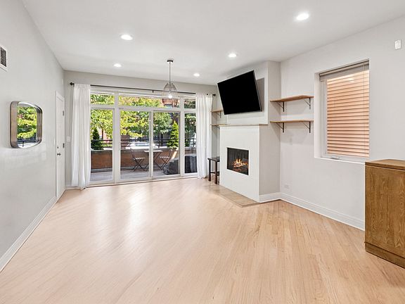 Welcome to this sprawling 3-bedroom, 2.5-bath duplex down, offering the perfect blend of modern luxury and comfortable living. This spacious home includes an additional den with beautiful hardwood floors throughout. Enjoy a spa-like experience in the expansive primary bathroom, complete with radiant heated floors throughout basement, a jetted tub, and a walk-in shower with body sprays for ultimate relaxation. The chef's kitchen is a true showstopper, featuring sleek finishes, gold accents, and ample storage space to accommodate all your culinary needs. Entertain or unwind in the open-concept living and dining area, anchored by a charming gas fireplace that creates a warm and inviting atmosphere. Step outside to enjoy not one, but two generous outdoor spaces-including a private walk-out patio measuring 17 by 11 feet-perfect for grilling, relaxing, or hosting guests. This home also offers tons of storage throughout, ensuring you'll never run out of room to keep everything organized. Included is a convenient garage parking space, adding to the ease and comfort of urban living. HVAC, Furnace & Water heater replaced in 2022. Ideally located within walking distance to public transit and all the dining, shopping, and charm of Roscoe Village, this home combines luxury, comfort, and an unbeatable location. Move in and enjoy everything this exceptional property has to offer!