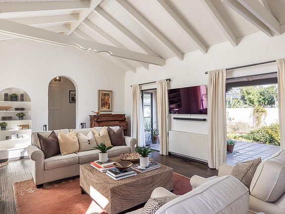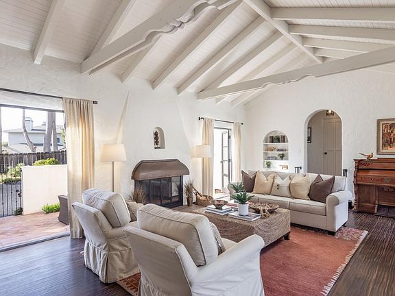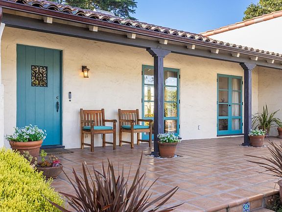 Nestled in the prestigious Country Club West neighborhood of Pebble Beach this classic hacienda-style residence embodies early Pebble Beach architecture. Featuring a gated entrance, privacy, and charming mature landscaping front and back. The main house offers three bedrooms, two bathrooms, an office, and a formal dining room. The bright, updated kitchen adjoins a charming breakfast nook, while the great room features a beamed wood ceiling, cozy fireplace and four sets of French doors opening onto terraces, inviting seamless indoor-outdoor living. A newly built studio above the two-car garage provides the perfect guest retreat with ocean views. This coastal oasis places you near the exclusive MPCC, world-class golf courses, and the beaches and walking trails of 17 Mile Dr. Embrace timeless elegance and effortless Pebble Beach living in this one-of-a-kind home.