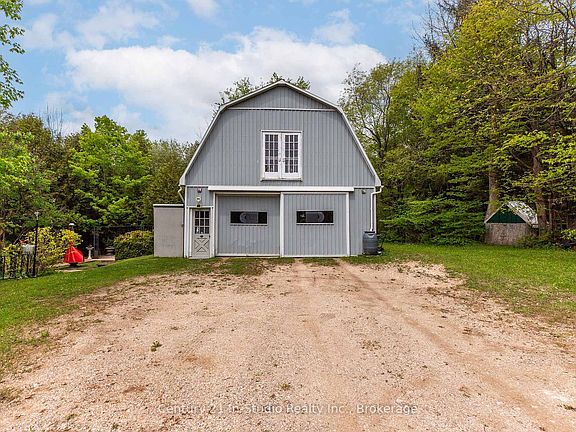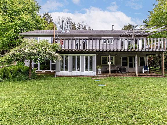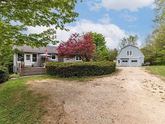 Situated on a tranquil 48-acre recreational paradise with river frontage on both sides of the Saugeen River, this property in Grey Highlands provides an ideal combination of privacy, nature, and family living. Whether you are looking for a peaceful permanent residence or a weekend getaway, this home and its surroundings promise four seasons of enjoyment.The main level welcomes you with a 3-season sunroom overlooking the trees, and a spacious upper deck extends your living space into the outdoors. An open-concept kitchen, dining, and living area, anchored by a cozy zero-clearance fireplace, is ideal for gatherings. The primary bedroom features built-in cabinetry, while a 4-piece bathroom and laundry room complete the main level. Downstairs, the walkout basement features a bright family room with a wood stove for added warmth, a bedroom with its own 3-piece ensuite bathroom, and a second 3-season sunroom. The home is efficiently heated and cooled with a propane-forced air furnace and central A/C. It also includes an air exchanger, drilled well, owned hot water tank, iron filter, and a newer well pump. A 25' x 40' detached shop featuring concrete floors and hydro is ideal for hobbyists or entrepreneurs. It offers the potential for a studio or workshop space above and includes a 60-amp pony panel. Additionally, you will find three garden sheds and a charming goldfish pond integrated into the landscape. The land is mostly treed with trails waiting to be reclaimed, offering a blank canvas for hiking and quiet riverfront exploration. From skiing, boating, fishing, golfing, scenic lookouts, waterfalls, and lakes, the area is a playground for outdoor enthusiasts. Located in an outdoor recreation hotspot, you're just 10 minutes to Flesherton, under 20 minutes to Durham or Markdale, and 50 minutes to Owen Sound or Collingwood.Reconnect with nature and explore all that Grey County has to offer, this is a rare opportunity to own a riverside sanctuary with incredible potential.
