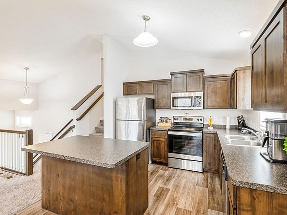 This thoughtfully designed home features a versatile split-level layout with an open-concept design creates an inviting atmosphere for gatherings, seamlessly connecting the spacious living and dining areas to the modern kitchen. Additionally, the vaulted ceilings truly enhance the sense of space and elegance, creating an inviting and luxurious atmosphere