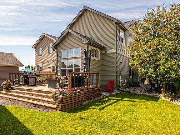 Welcome to this stunning 2-storey home in the heart of Allard, thoughtfully designed for modern living. With 3 spacious bedrooms upstairs and 2.5 baths, it offers a perfect balance of style and function. The main floor is highlighted by upgraded cork flooring, a cozy gas fireplace, and expansive windows that fill the space with natural light. The partially finished basement provides additional living space with an impressive open-to-above design. Outside, the pie-shaped yard is a private retreat—fully landscaped with mature trees and perennials, fenced for privacy, and siding onto a walking path for easy access to the outdoors. An oversized 22x24 heated garage with attic storage and a 240v outlet pairs perfectly with an extra parking pad for guests, RV, or boat. With central A/C, endless natural light, and a prime location near schools, parks, shops, and amenities, this home truly offers the lifestyle you've been waiting for.