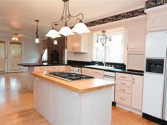 Custom Built home in Briarwood! Expansive rancher with main level living, vaulted ceilings, gas fireplace, wood floors, large kitchen with gas cook top, cabinet lights, wine rack, solid surface countertops, dining room with wood fireplace, main level family room, sunroom, master suite with bay window & sitting area, walk-in closet, jetted tub, separate shower, nice sized laundry room, 2 car attached garage, Large basement with 2 bedrooms finished the rest is unfinished.