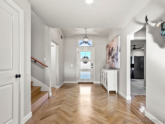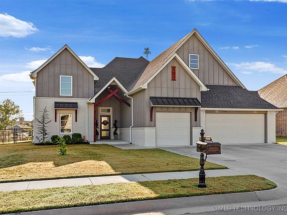 Beautiful Home w/vaulted ceilings, distressed beams & open Living/Kitchen concept. 3 bedrooms down plus 2 additional bedrooms up, Designer features throughout, Hardwood Flooring, Modern industrial lighting. Luxurious oversized master bathroom with his/her sinks, tub, & large tiled shower. Dream master closet has room for sitting and a door into the amazing laundry room. Shiplap wall in dining. Granite countertops throughout w/custom backsplash in kitchen. Stainless steel appliances & coffee bar. Built-in desk in upstairs bonus area. Metal decorative fence and extended patio slab. Garage has insulated doors with mini split Heat/Air. Generator w/ transfer switch. Just 20 minutes from Owasso , Tulsa and East Broken Arrow.